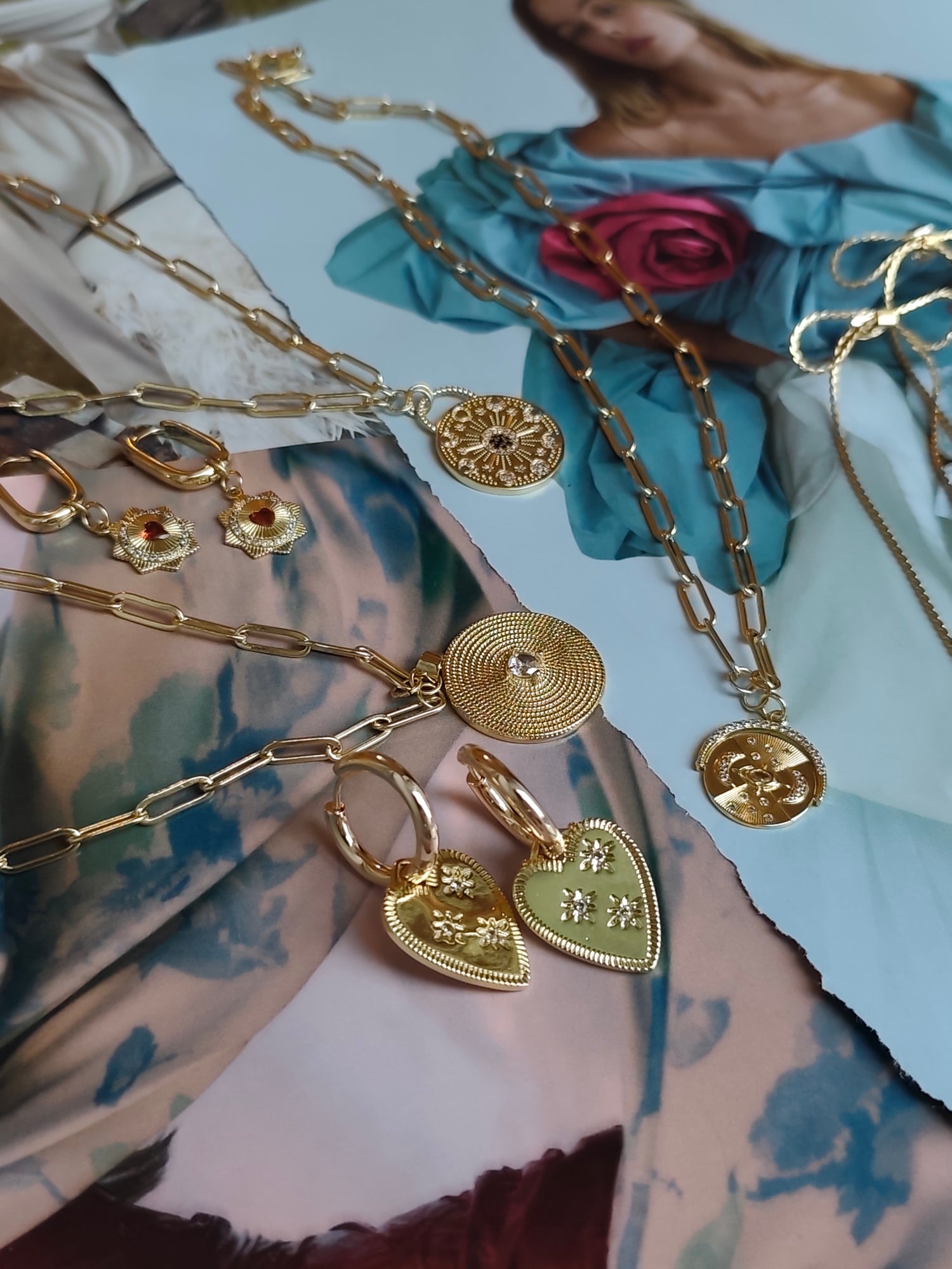 It incorporates an array of hand picked, high quality precious and semi precious stones, and aims to use the highest possible quality materials, 18k and 24k gold plated.